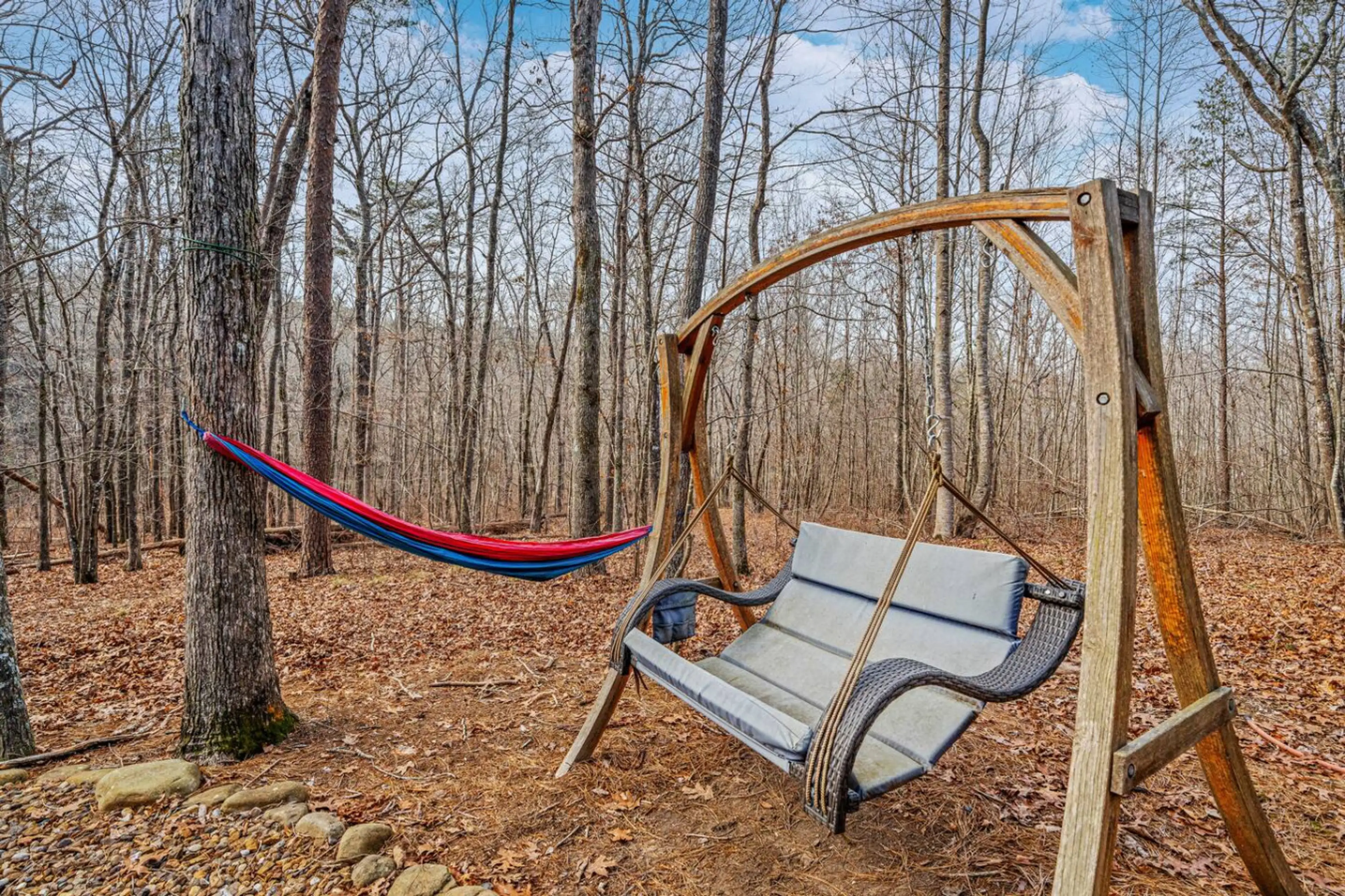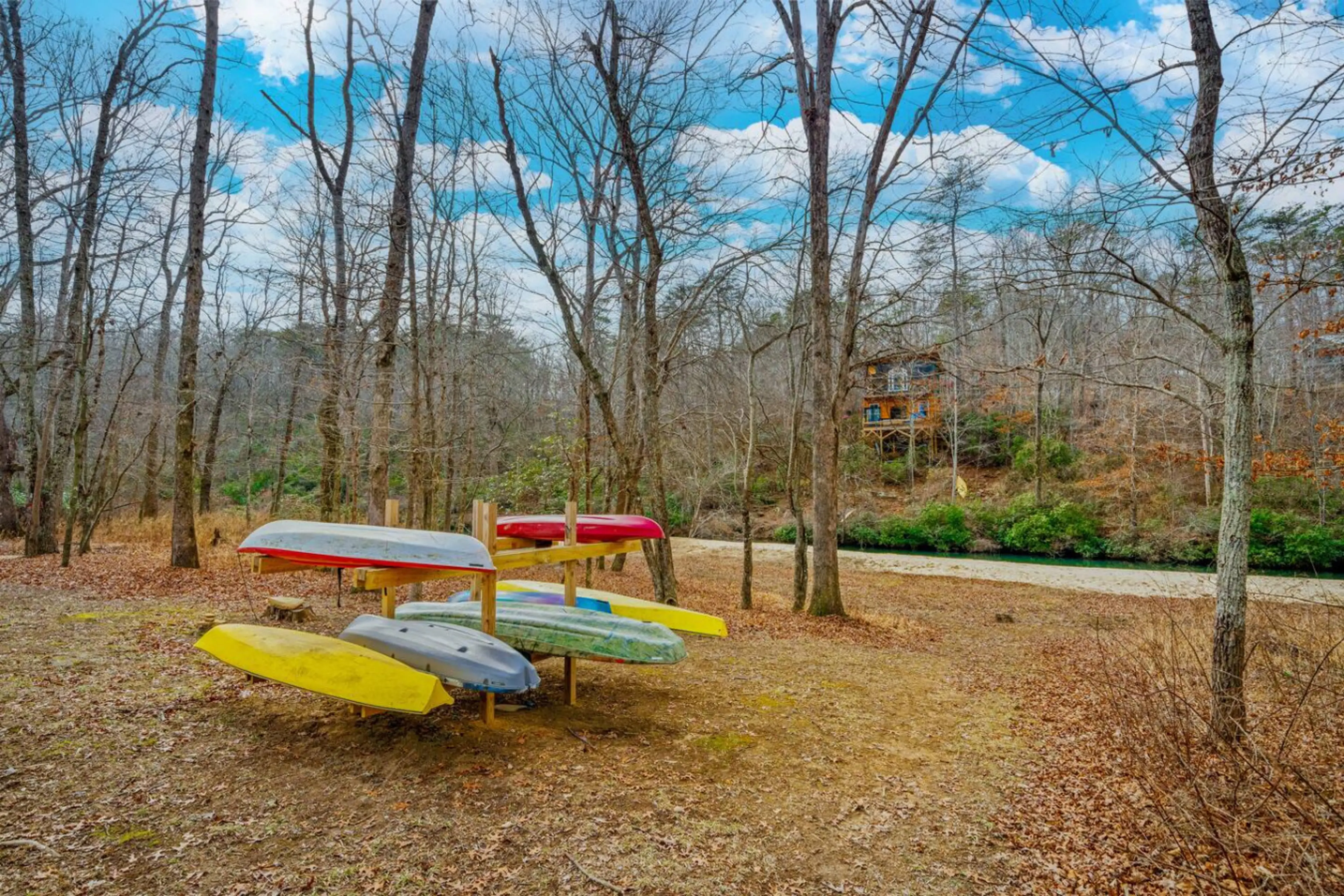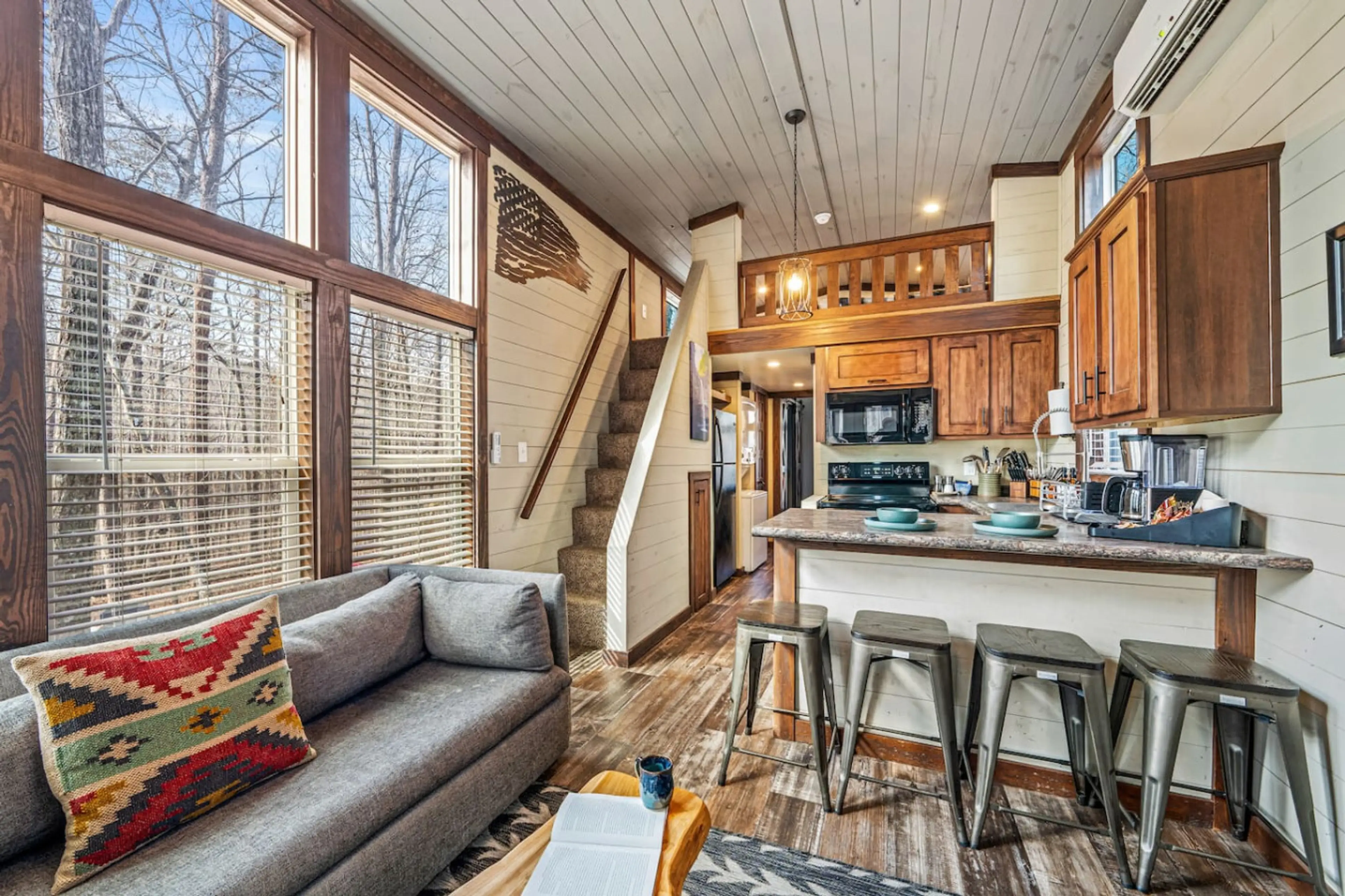 Discover "A Lil Bit O Heaven", a peaceful hideaway within the tiny home community of Little River Escape. Surrounded by forest views and the soothing river, this cabin blends nature and comfort. ➤ River Access, Trails & Swimming Hole ➤ Kayaks, Dock & Beach Area by the River ➤ Seasonal Pool (May 1st...